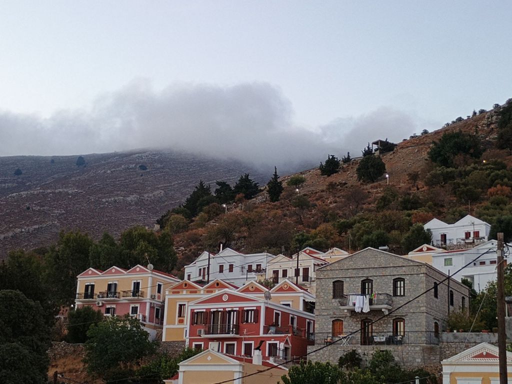 After many months of searing heat and drought Symi is finally slipping into cooler days, mist and drenching dewfalls. By cooler I mean in the high twenties, even up to 30 at midday, but after months in the danger zone above blood heat, it is still a relief.