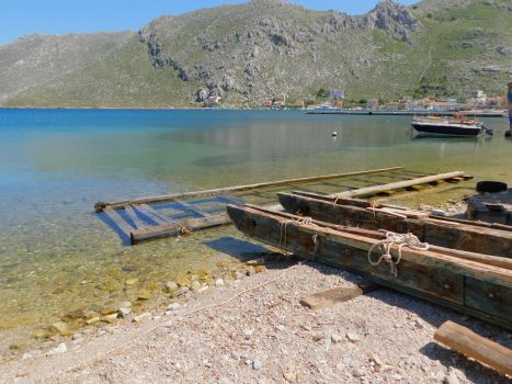 A sledge, waiting for a boat.