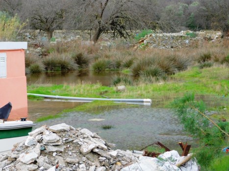 A flooded garden near the Pedi Beach Hotel